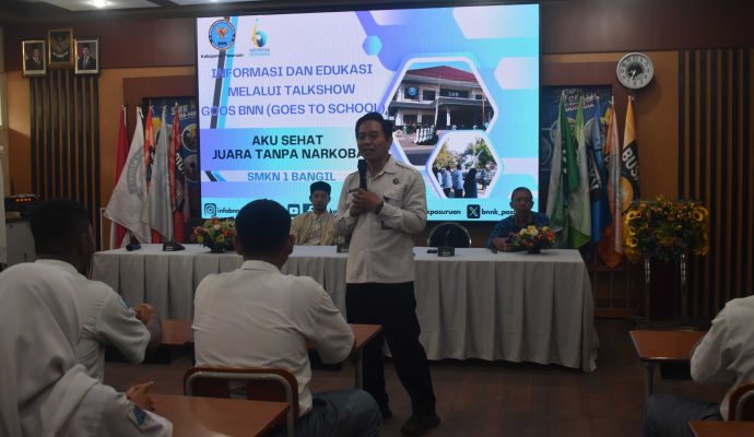 SMKN 1 Bangil kembali menghadirkan kegiatan edukatif bagi peserta didik melalui program GOOS BNN (Goes To School) yang berlangsung pada 17 November 2025 di ruang pertemuan sekolah. Kegiatan ini mengusung tema “Aku Sehat, Juara Tanpa Narkoba”, sebagai upaya memperkuat kesadaran generasi muda mengenai bahaya narkoba dan pentingnya menjaga pola hidup sehat.